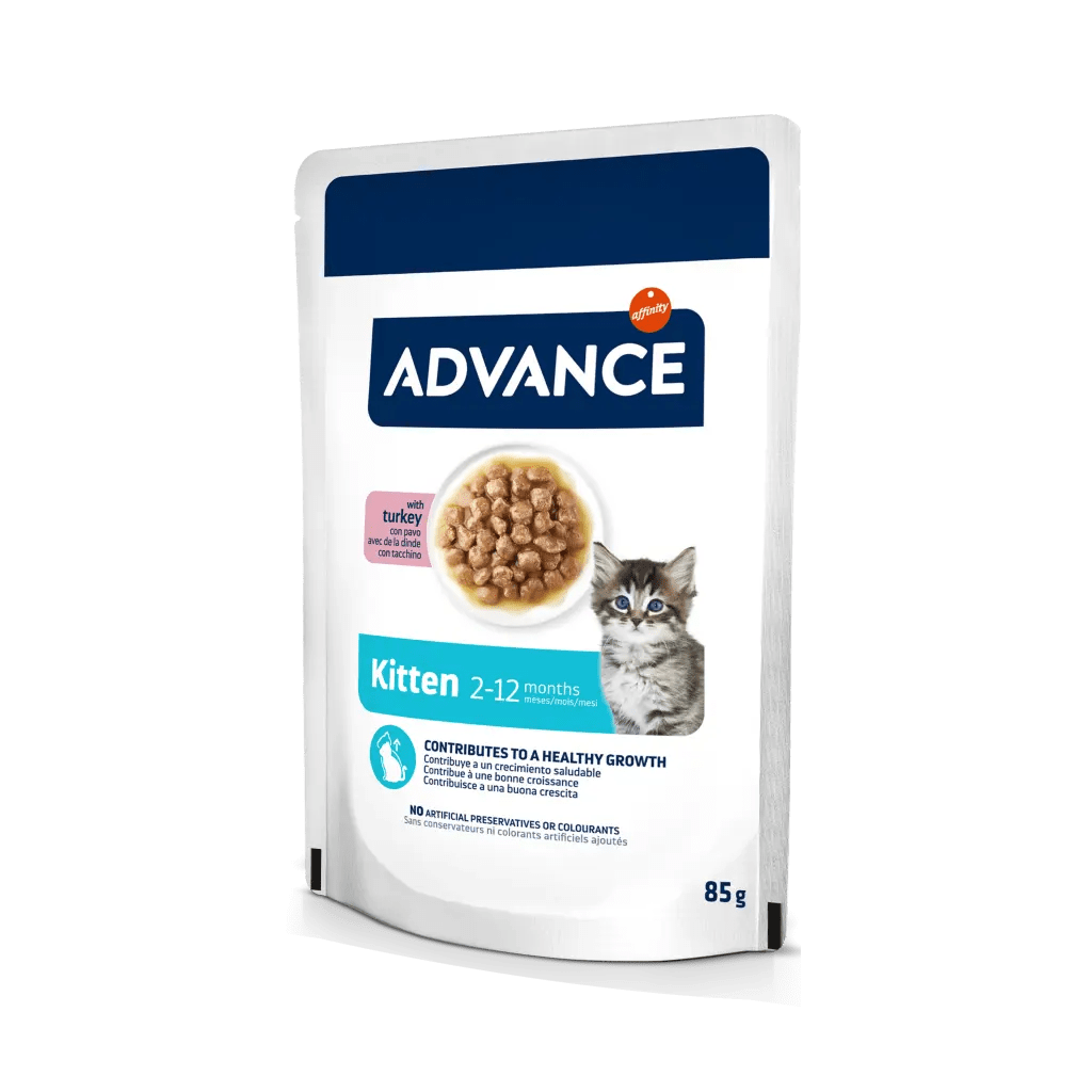 Si tu gatito tiene menos de un año, está en la etapa en la que experimenta el mayor número de cambios físicos y de conducta, por lo que necesita una alimentación que le ayude a crecer sano y fuerte. ADVANCE Wet Kitten es un alimento húmedo completo y equilibrado formulado específicamente para cubrir las necesidades de los gatitos.Su fórmula está desarrollada por expertos en nutrición para contribuir al desarrollo óseo y muscular de tu gatito, y a un crecimiento saludable. ADVANCE Wet está elaborado con ingredientes de alta calidad cocidos al vapor y se presenta en forma de bocaditos en salsa fáciles de masticar. Combínalo con la alimentación seca habitual de tu gatito para un extra de sabor y variedad, u ofrécele una alimentación húmeda exclusiva 100% completa y equilibrada.
