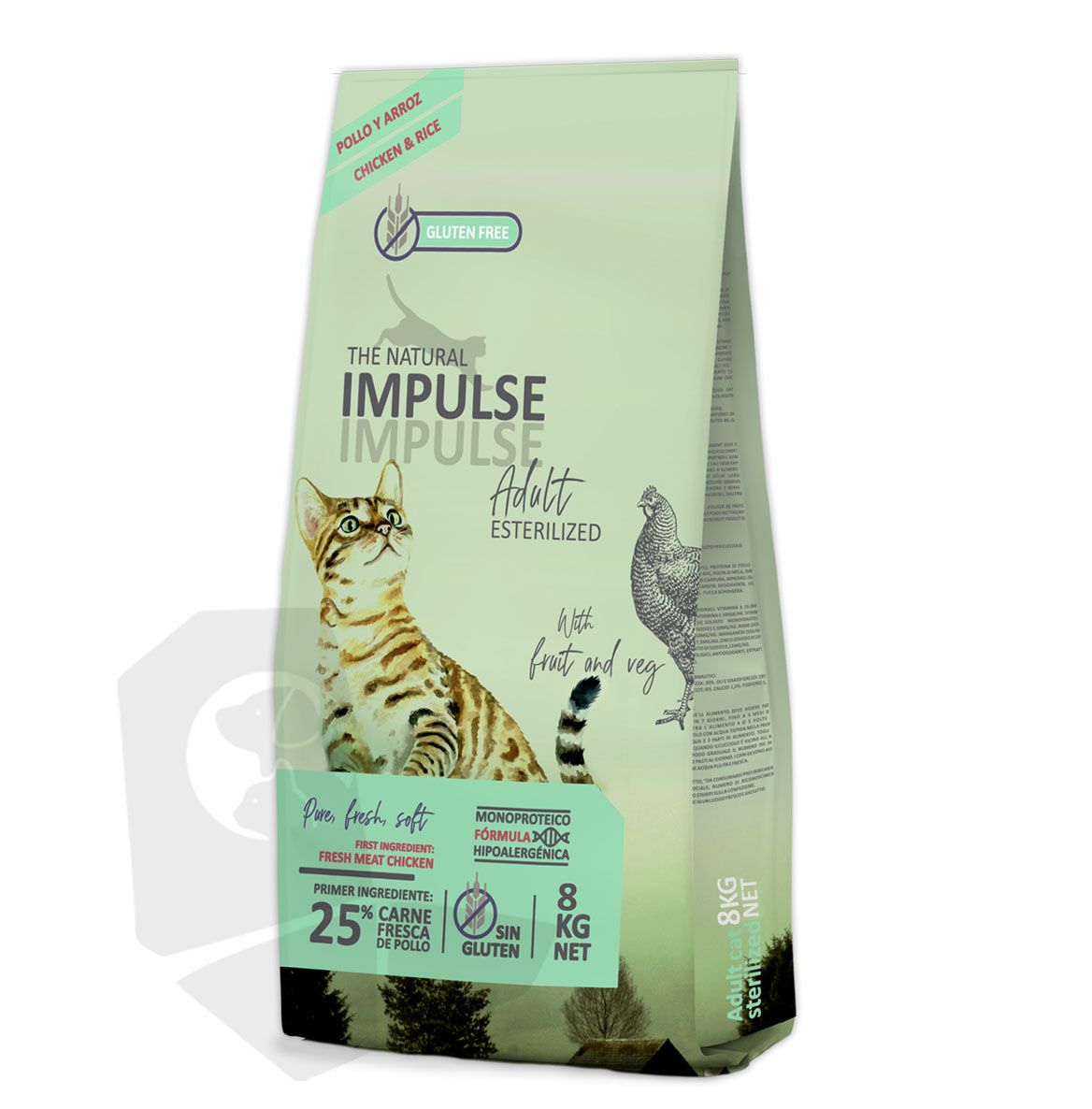 Pollo fresco (25%), arroz, proteÃna de pollo deshidratada, guisantes, grasa de ave, hidrolizado de hÃgado de pollo, levaduras, proteÃna de guisantes, pulpa de manzana, aceite de pescado, minerales, aceite de oliva, zanahoria deshidratada, achicoria, manano-oligosacaridos, yucca schidigera.