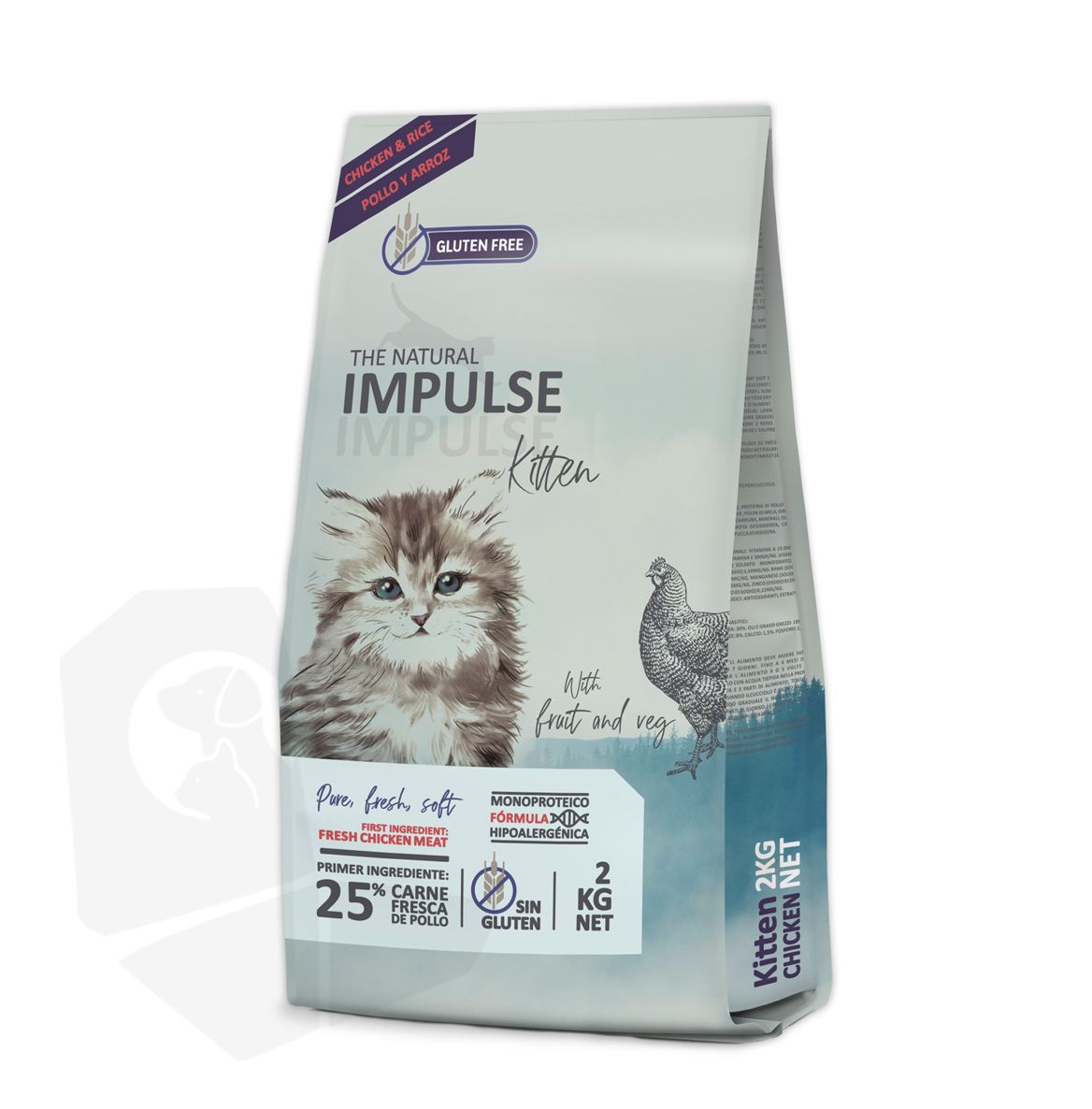 Pollo fresco (25%), proteÃna de pollo deshidratada, arroz, guisantes, grasa de ave, proteÃna de guisantes, levaduras, aceite de pescado, pulpa de manzana, hidrolizado de hÃgado de pollo, sustancias minerales, harina de algarroba, aceite de oliva, zanahoria deshidratada, achicoria, pared celular hidrolizada de lavaduras (fuente de MOS), yucca schidigera, etracto de mejillón de labios verdes, tomillo.