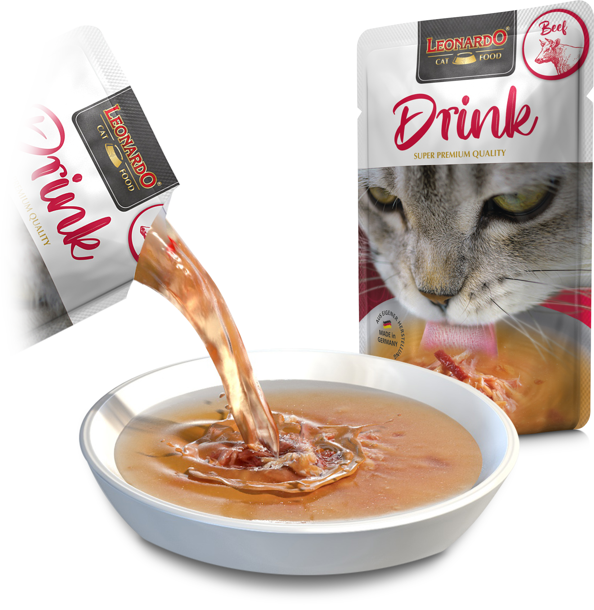 ¡Motiva incluso a los gatos más exigentes! Algunos gatos simplemente no sienten sed con frecuencia, pero el LEONARDO Drink Beef les hará cambiar de opinión rápidamente. Su delicioso sabor a carne es una tentación irresistible, fácil de digerir y que fomenta la hidratación, como una recompensa. Además, mejora su bienestar, ya que una hidratación adecuada apoya la salud del tracto urinario.