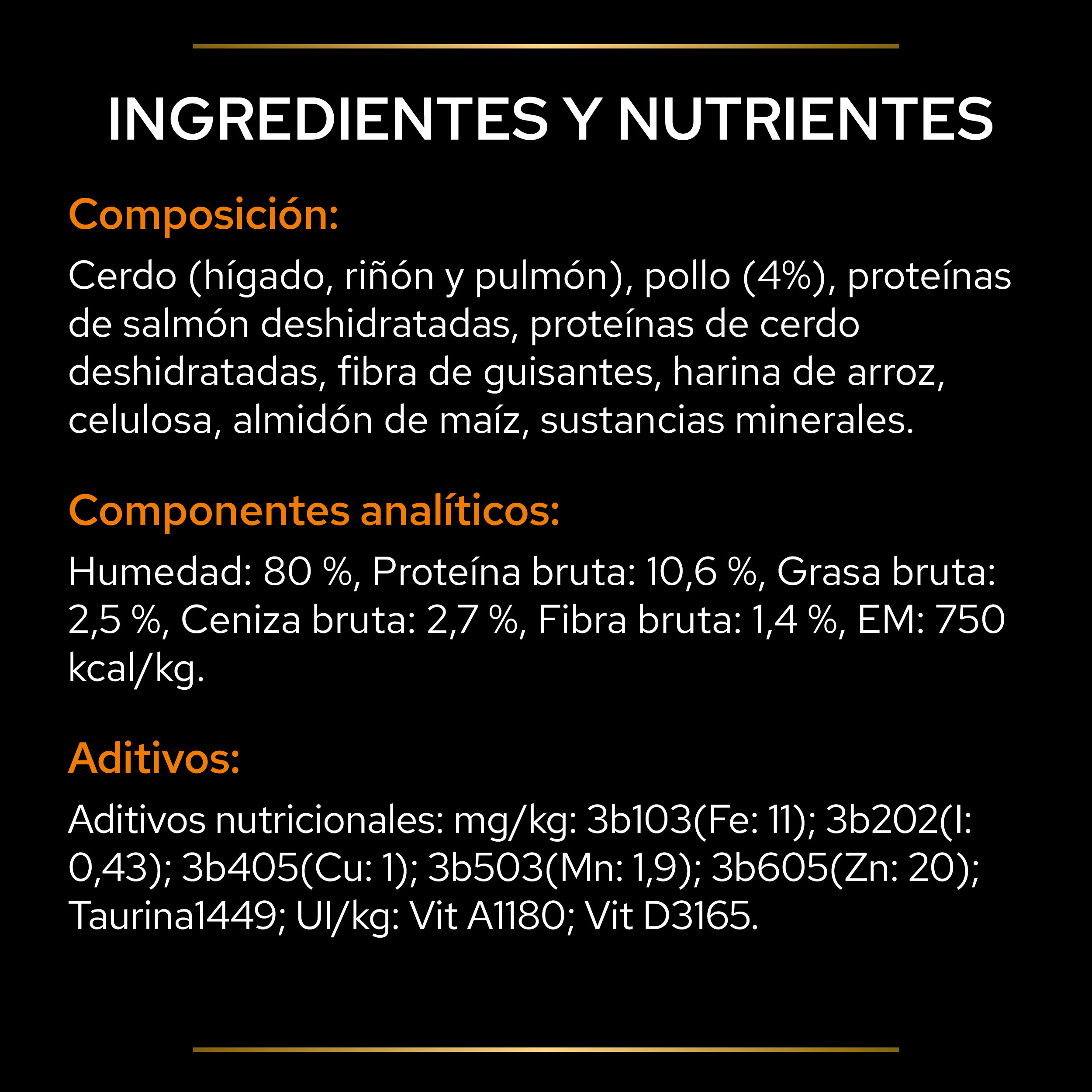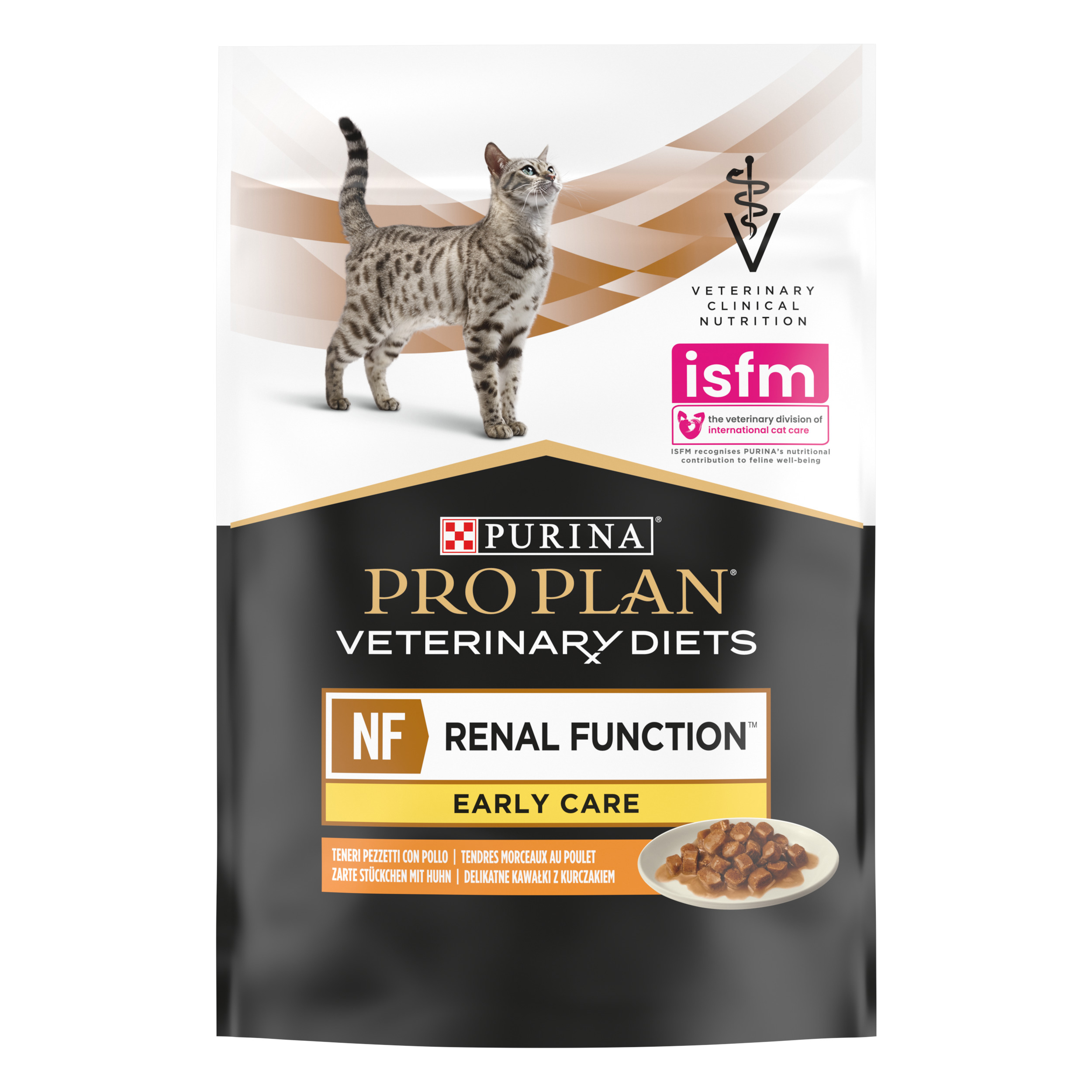 Alimento dietético completo en sobre para gatos. Formulado para apoyar la función renal en caso de fases tempranas de insuficiencia renal crónica en gatos adultos. Contenido moderado de proteína de alta calidad y fórmula de protección renal con contenido restringido de fósforo, con ácidos grasos omega 3 añadidos, potasio y antioxidantes para ayudar en el cuidado temprano del riñón.