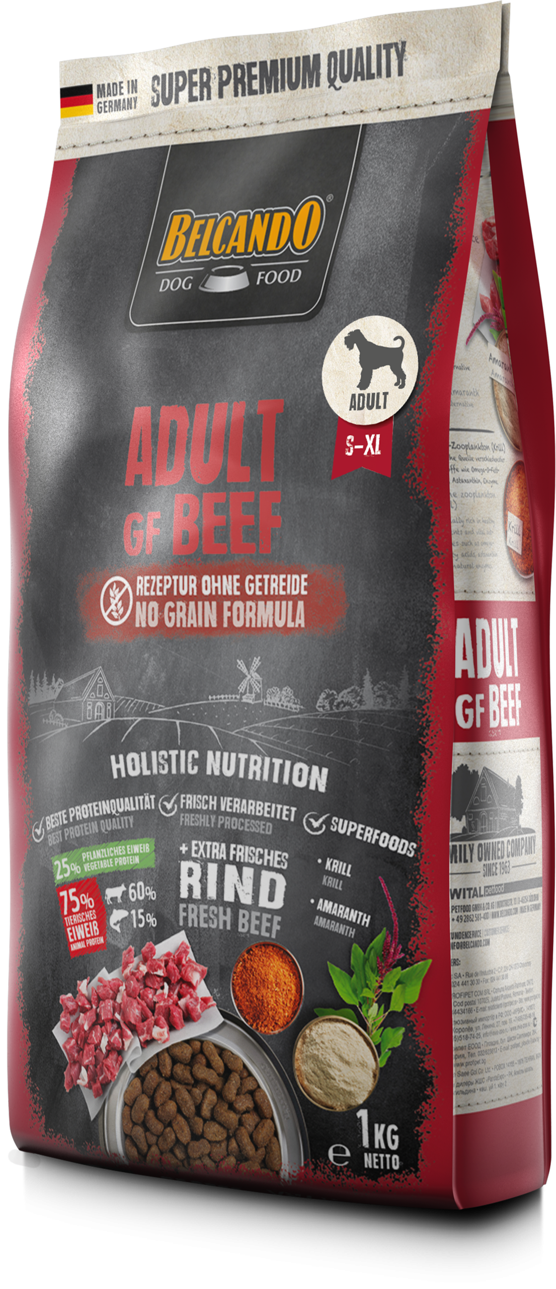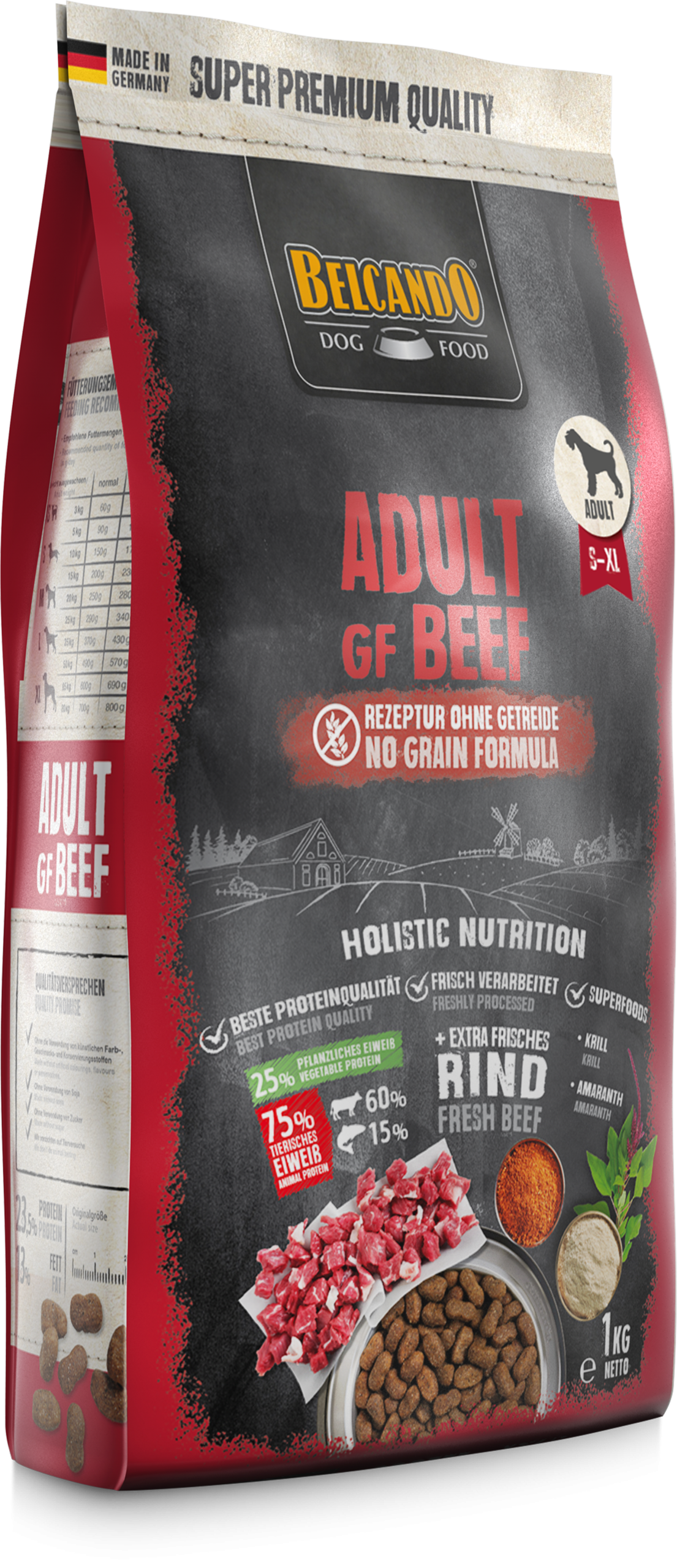 La alimentación ideal en caso de intolerancias al gluten o al cereal para perros que prefieren una alternativa a la carne de ave. En la fórmula desarrollada siguiendo un concepto holístico de la alimentación, el cereal se sustituye por amaranto de alta calidad, cuyo contenido en nutrientes importantes (proteína, el aminoácido esencial lisina, ácidos grasos insaturados, minerales, oligoelementos) es notablemente superior. El alto porcentaje de carne fresca hace que Adult GF Beef resulte delicioso, incluso a perros difíciles de contentar. En él se ha ajustado el contenido de proteína y grasa a las necesidades de perros adultos de todas las razas con una actividad normal.