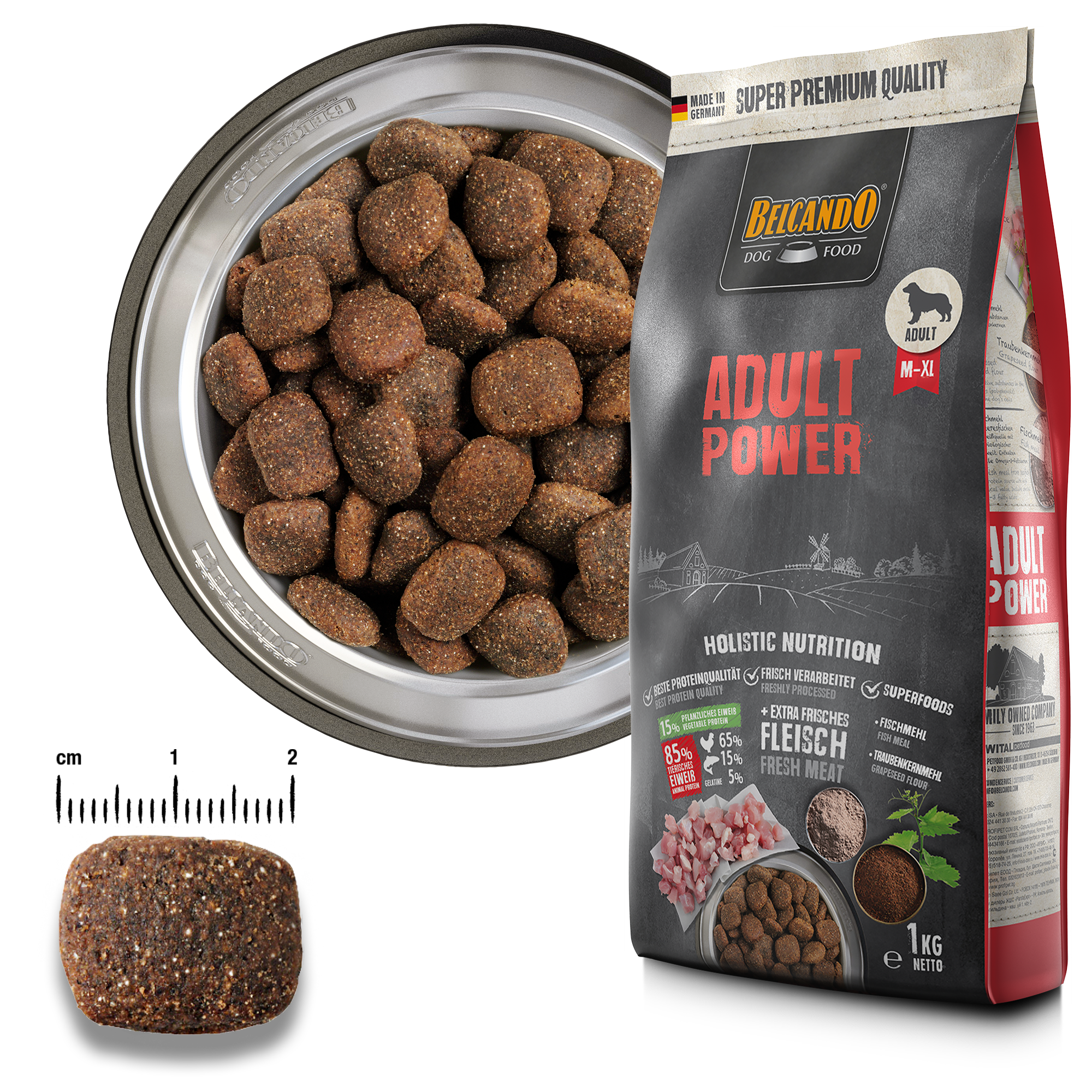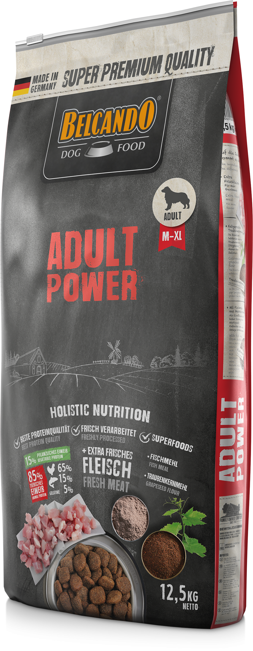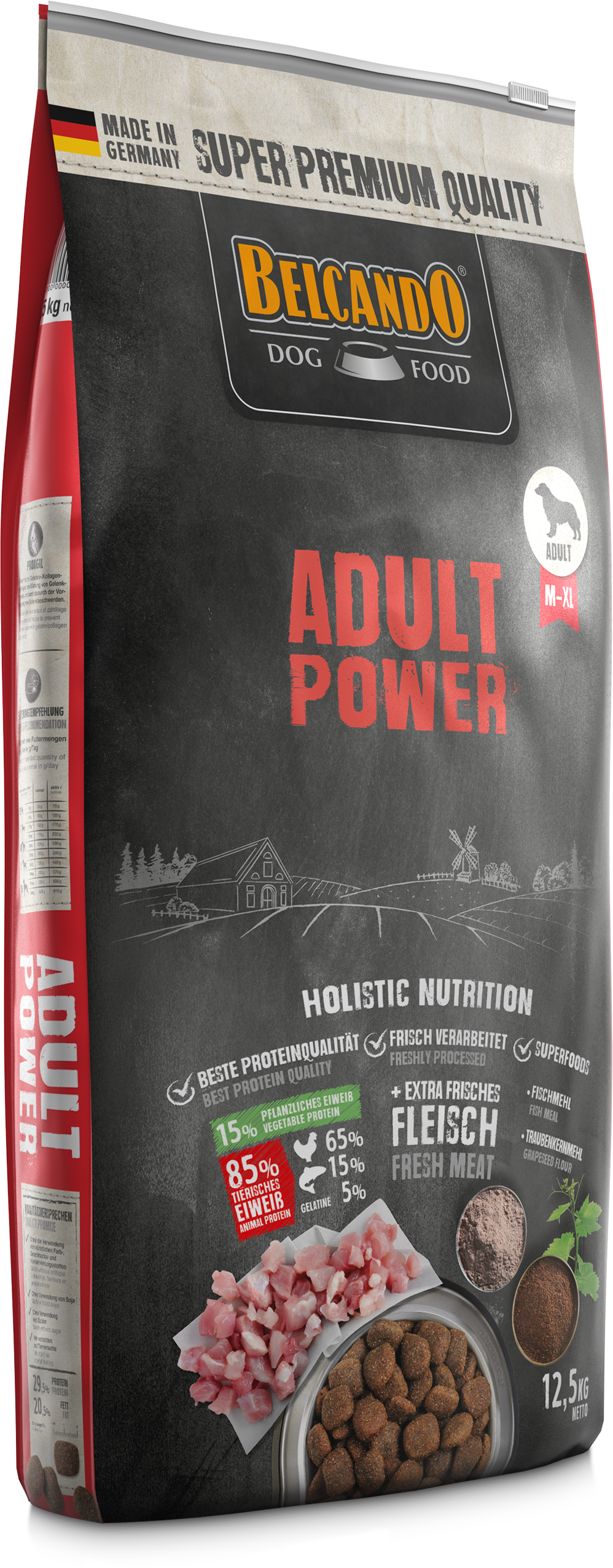 Ingredientes cuidadosamente seleccionados, gran cantidad de carne de ave de fácil digestión y pescado como fuentes de proteÃnas de alto valor biológico que aportan especialmente ácidos grasos omega-3, lo que hace que BELCANDO Adult Power sea la alimentación óptima para perros que trabajan duro. La harina de semilla de uva prensada en frÃo garantiza una protección celular óptima. El contenido en proteÃnas y grasas, especialmente elevado, se adapta a las extraordinarias necesidades de energÃa de los perros que deben rendir por encima de la media en el trabajo, el deporte o el ocio. La alta concentración de nutrientes hace que esta alimentación sea también idóneo para las hembras al final de su embarazo y durante el perÃodo de lactancia.