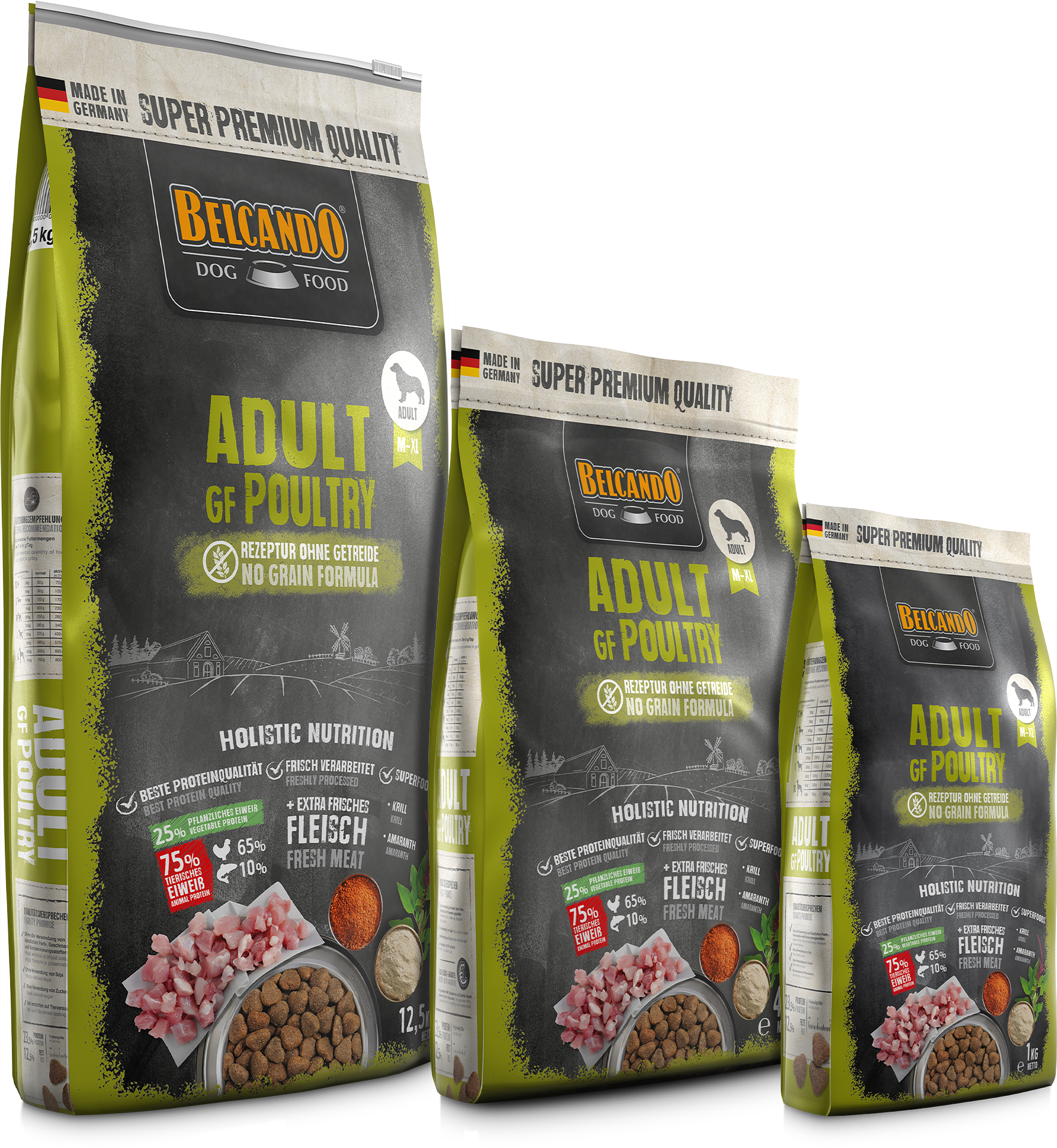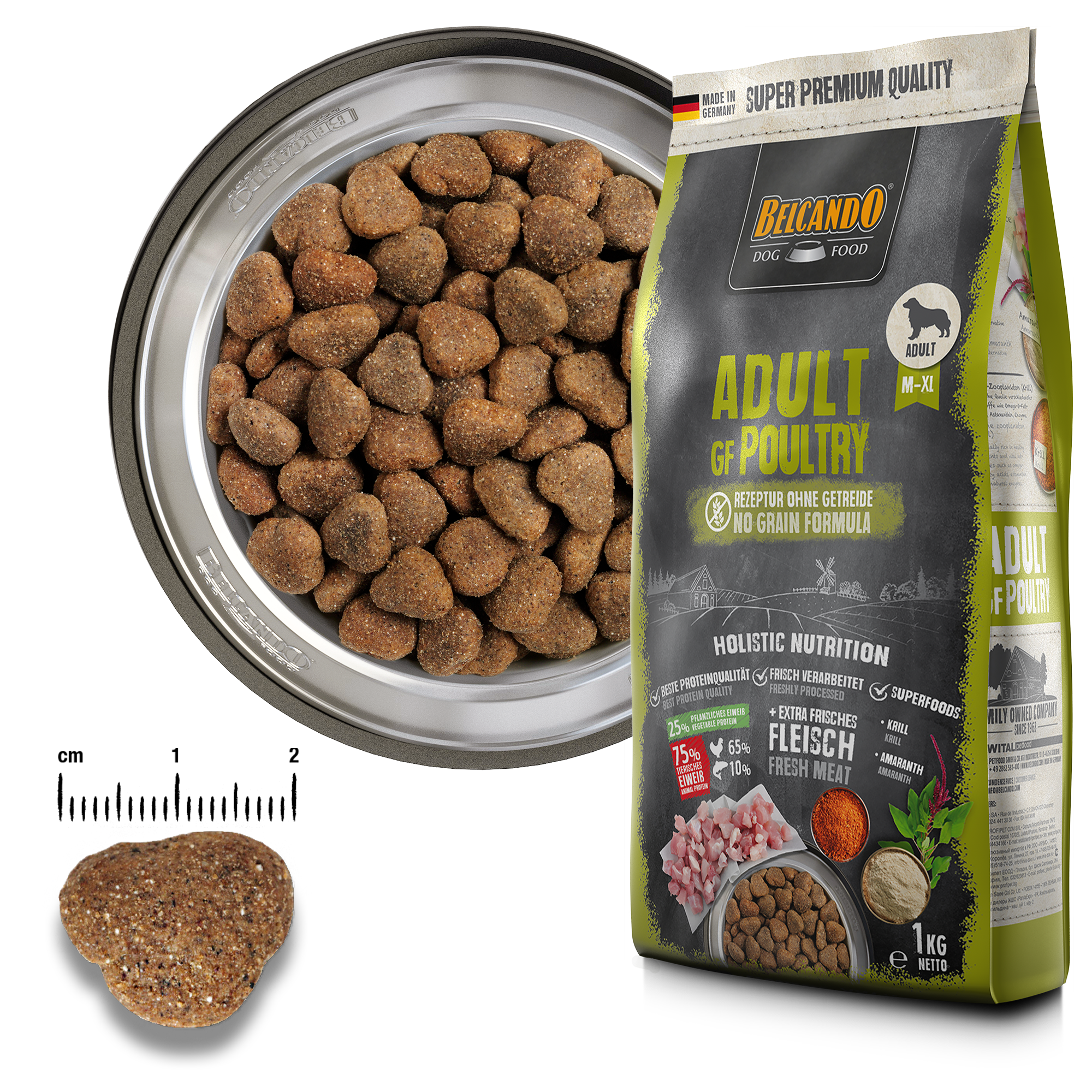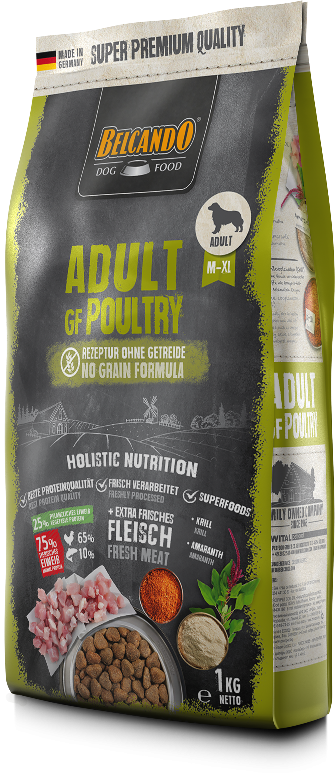 Una alternativa nutricional para perros que tienen intolerancia al gluten o a los cereales. En esta receta los cereales se sustituyen por amaranto de alta calidad. El amaranto es una de las primeras plantas útiles utilizadas por el hombre y ya era muy apreciado por los aztecas debido a sus propiedades energéticas. Gracias a la combinación con kril –que es una gran fuente de nutrientes como los ácidos grasos omega 3, se consigue una fórmula perfectamente equilibrada. Con un bajo contenido en proteÃnas y grasas, BELCANDO Adult GF Poultry se ajusta a las necesidades de los perros con una actividad normal.