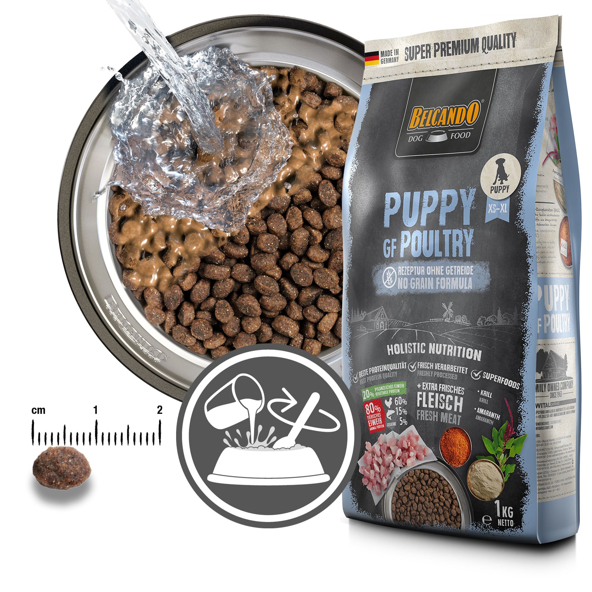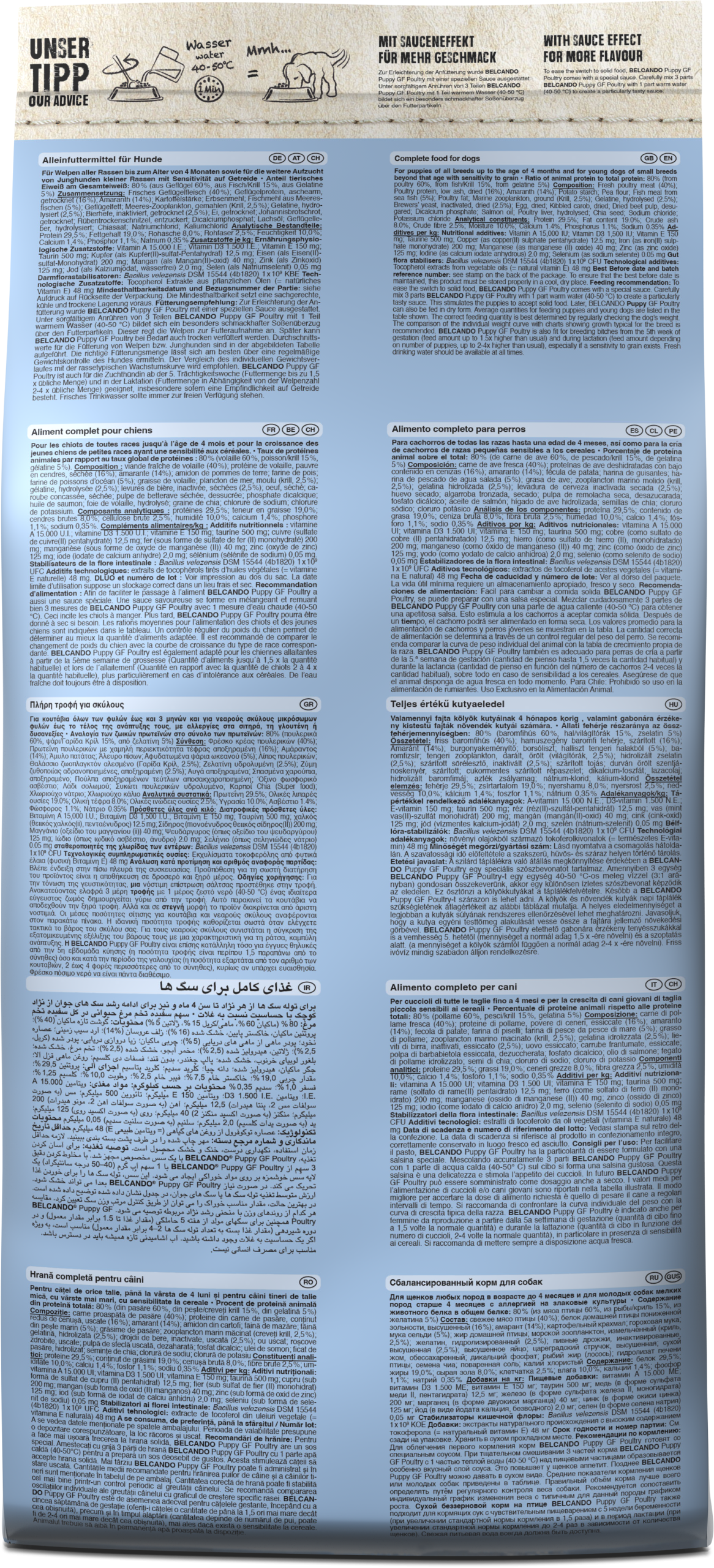 Muchos criadores y dueños de cachorros conceden gran importancia a una alimentación sin cereales para sus perros. Por lo tanto, es importante seleccionar desde el principio la receta adecuada. BELCANDO Puppy GF Poultry se tolera muy bien gracias a la cantidad extra de ave fresca y a las materias primas cuidadosamente seleccionadas. En esta fórmula se sustituyen los cereales por amaranto de alta calidad, una fuente ideal de nutrientes. Salsa : cuando se mezcla con agua caliente, se forma una salsa sabrosa.