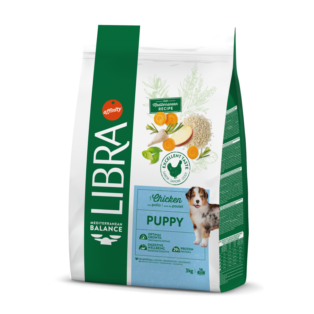 Nuestra receta mediterránea con Pollo, que contiene una proporción correcta de nutrientes esenciales e ingredientes de calidad como fruta, verduras, arroz y hierbas aromáticas, ofreciendo una alimentación completa y equilibrada a tu cachorro.