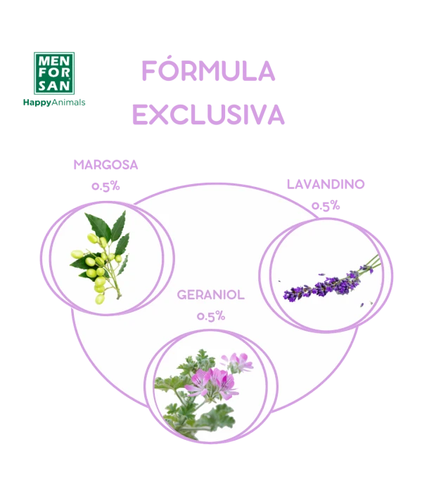 - Repele de forma natural cualquier insecto del pelaje