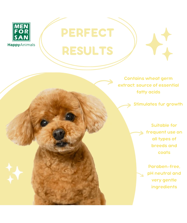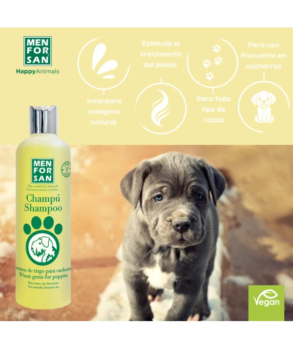 ChampĂș de mĂĄxima calidad que no irrita los ojos ni las mucosas. El Germen de Trigo incluido en su composiciĂłn aporta gran cantidad de nutrientes que contribuyen a mantener y recuperar la elasticidad del pelaje.