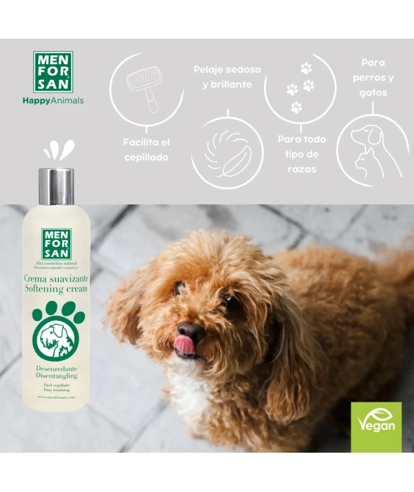 Crema suavizante para perros con pelajes largos, finos, gruesos o rizados. Contiene agentes antiestáticos que facilitan el peinado después del baño dejando el pelaje sedoso y brillante por lo que se ahorra tiempo y se evitan los tirones y enredos en el cepillado.