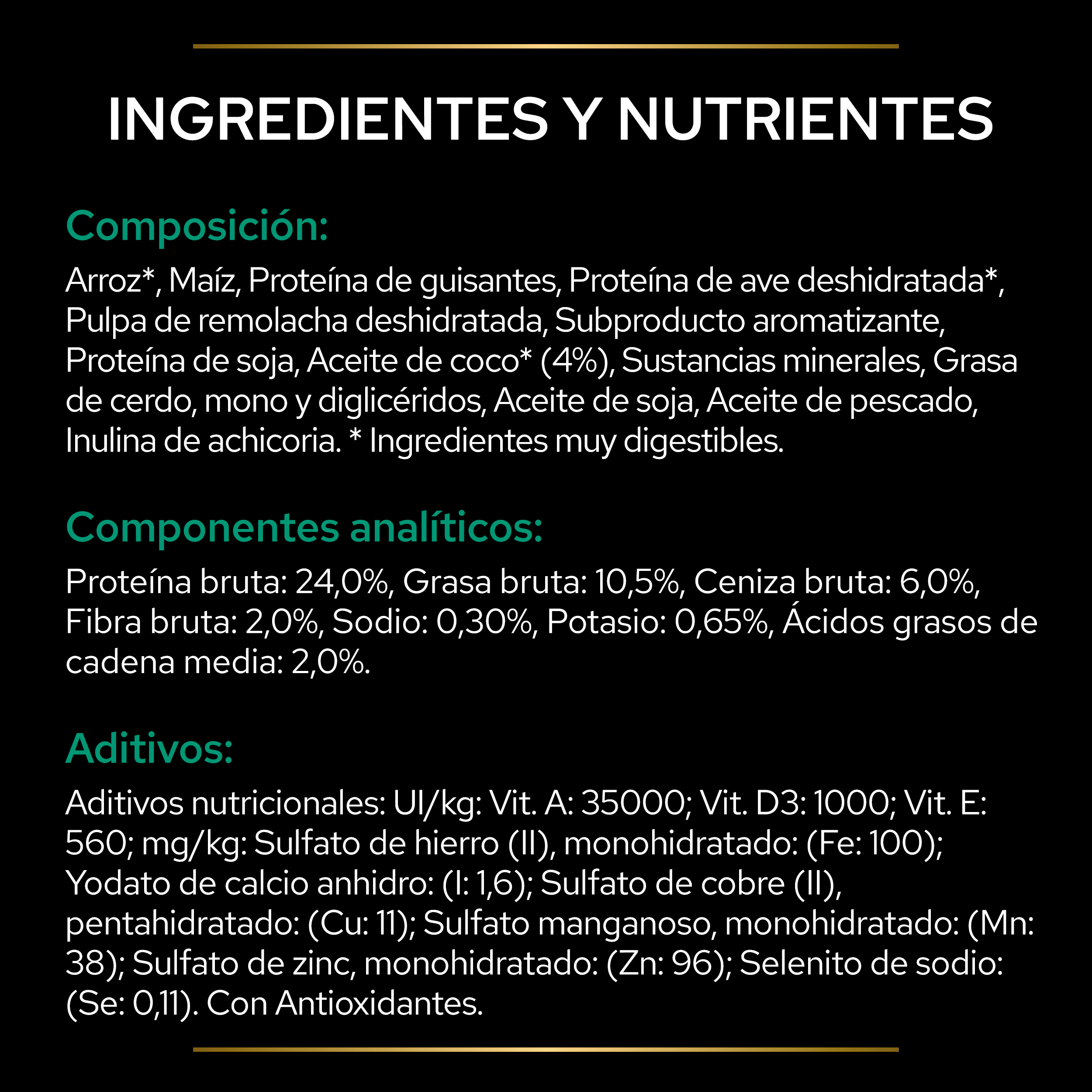 Con ingredientes fáciles de digerir para ayudar a reducir la carga de trabajo del intestino y promover unas heces de buena calidad.