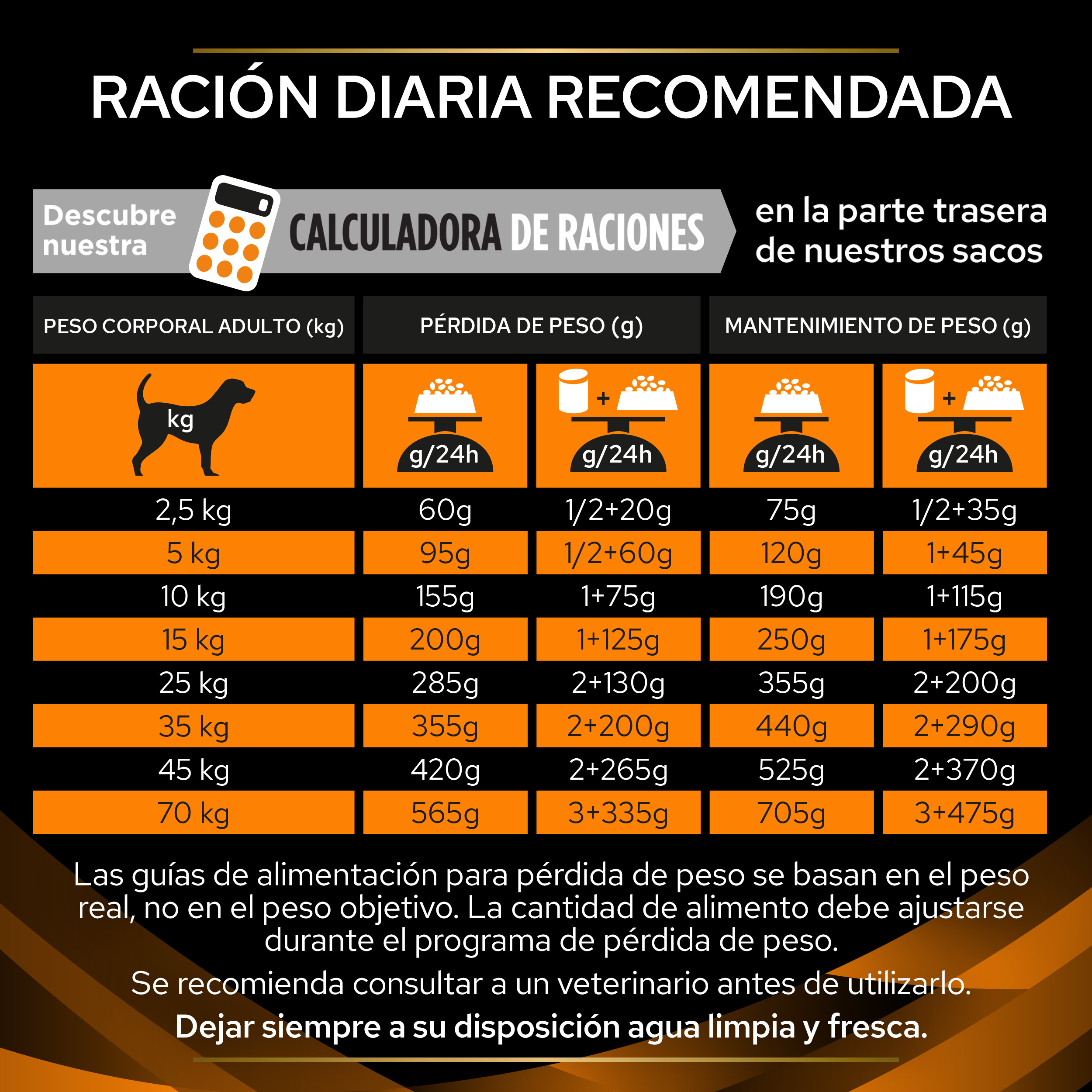 Modo de empleo y ración diaria recomendada: consulta la tabla. El periodo de utilización recomendado para la disolución de cálculos urinarios de estruvita es de 5 a 12 semanas, e inicialmente hasta 6 meses para la reducción de su reaparición. Se recomienda consultar a un veterinario antes de utilizarlo y antes de prolongar su periodo de utilización. Dejar siempre a su disposición agua limpia y fresca.»