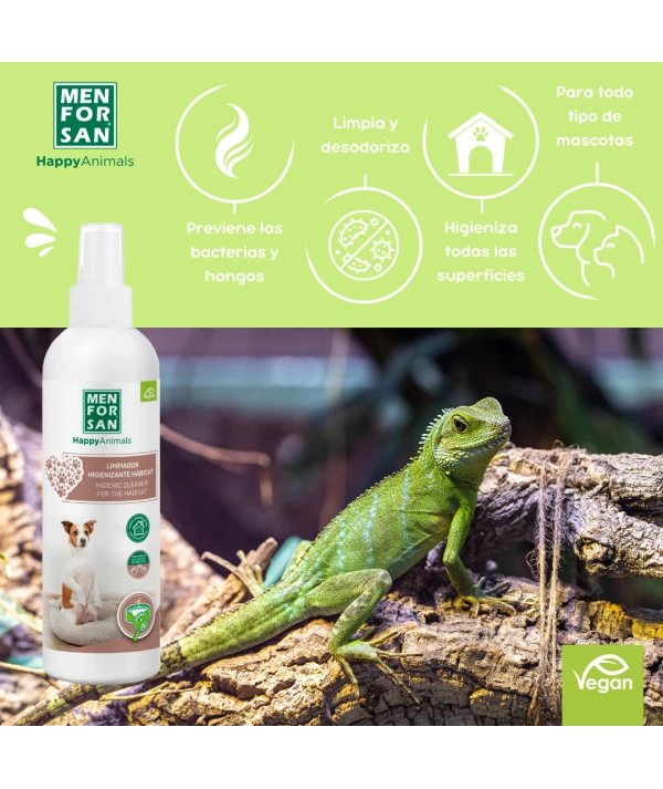 Limpiador de uso directo que higieniza cualquier lugar donde habiten mascotas. Previene las infecciones bacterianas y de hongos proporcionando una completa higiene y una sensación de limpieza y desodorización.