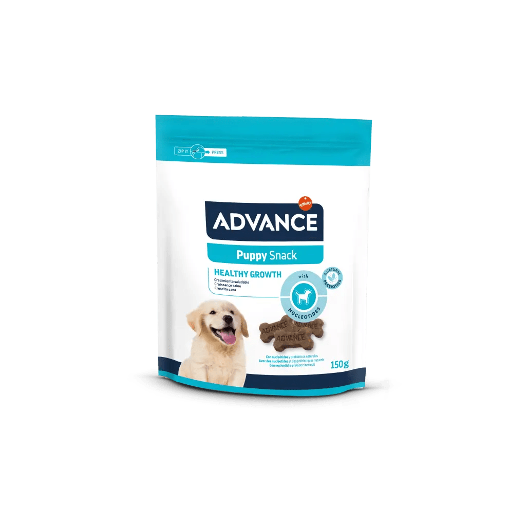 ADVANCE Puppy Snack es una galleta blanda y apetitosa que contribuye al desarrollo óptimo de tu cachorro gracias a su fórmula exclusiva. Contiene nucleótidos que estimulan los mecanismos de defensa, lo que favorece el desarrollo del sistema inmunitario. Además, contribuye al desarrollo cerebral y cognitivo gracias al Omega-3 DHA, y ayuda al desarrollo de una microflora intestinal sana gracias a la inulina con efecto prebiótico.