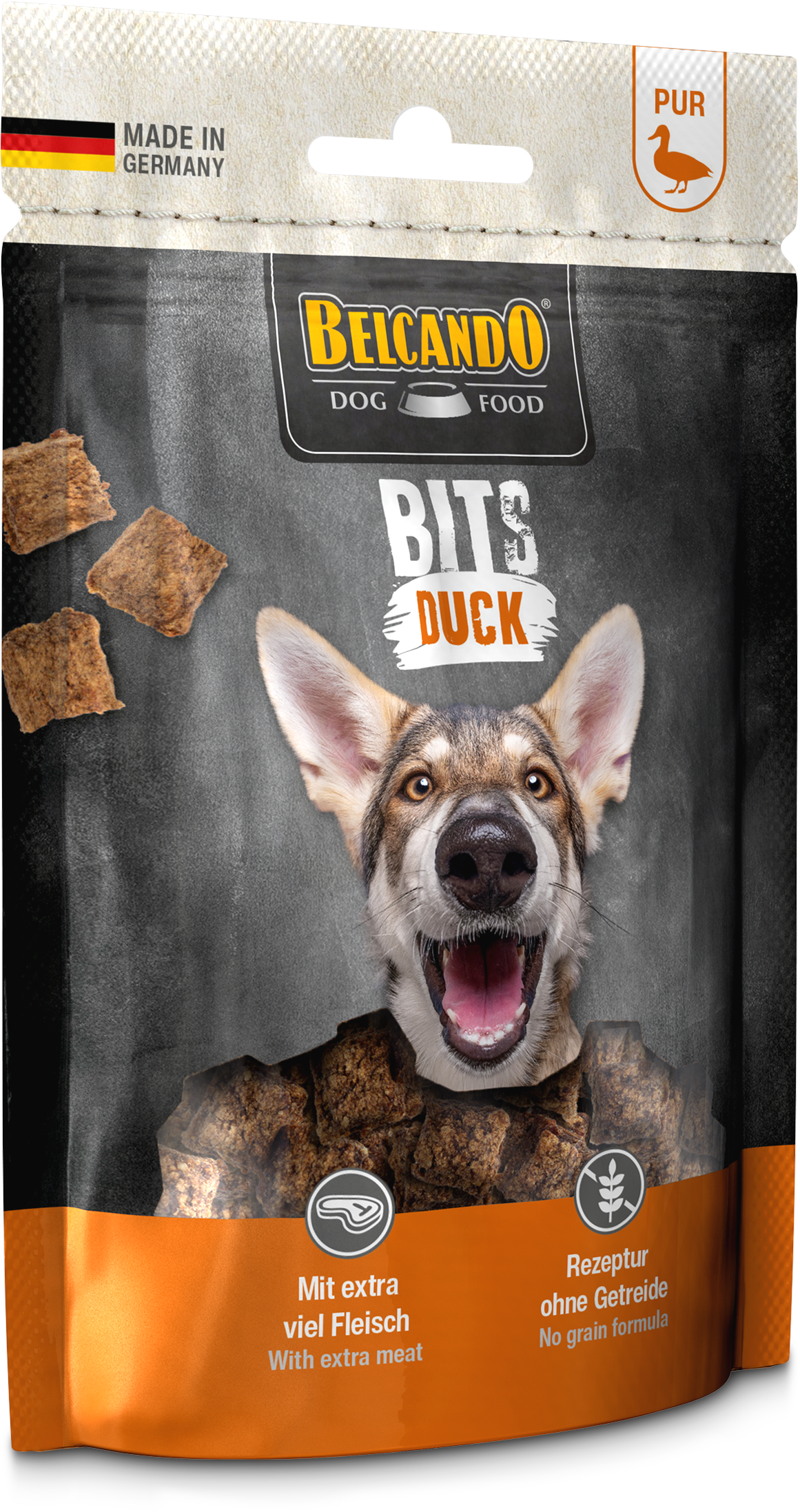 ¡Pato Feliz! Ya sea sensible o exigente, casi todos los amigos peludos están de acuerdo: el pato sabe delicioso, especialmente en el práctico formato Bits. Además, este snack es especialmente digestivo y ofrece una alternativa rica en nutrientes a otras fuentes de proteÃnas. Los Bits son naturalmente «Made in Germany» con extra carne. La receta sin cereales ni azúcar se seca suavemente al aire y utiliza solo una fuente de proteÃna animal para mayor simplicidad.